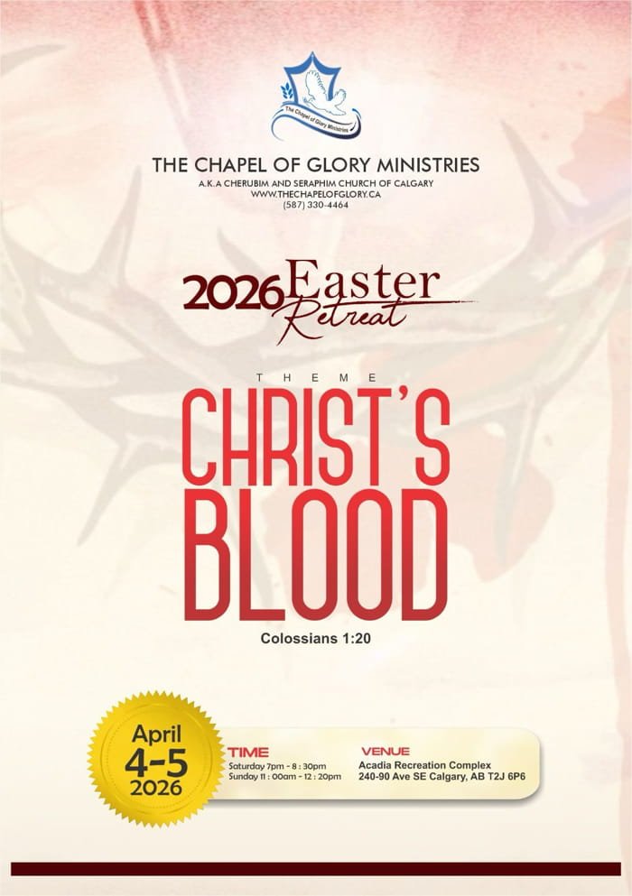 The Chapel of Glory Ministries, also known as Cherubim and Seraphim Church of Calgary, is an offshoot of CSMC Surulere Sub-Headquarters Nigeria. This branch began on March 6, 2011, through divine directives, and since then, the Lord has been faithful in equipping His workers and building His vineyard.